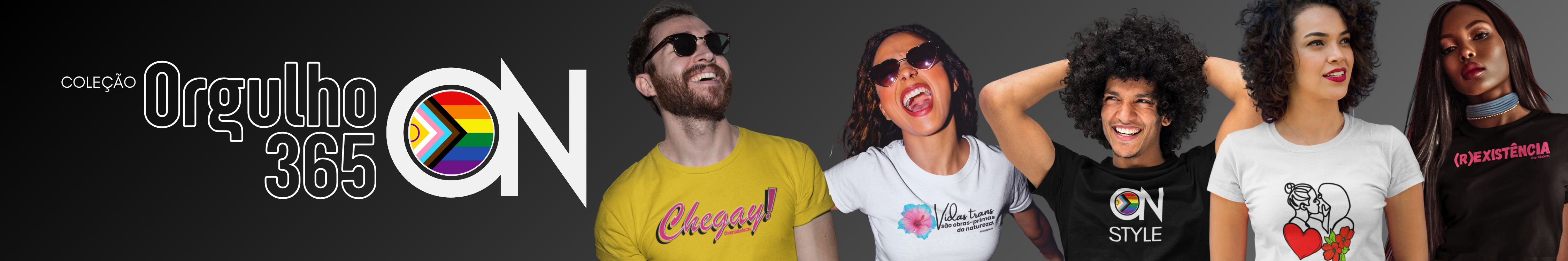 Orgulho não é só no mês de junho. A coleção "Orgulho 365 ON" nasceu pra vestir identidade, luta, afeto e autenticidade, de janeiro a dezembro. São peças que combinam design, frases e propósito social, com estampas que conversam diretamente com quem vive e resiste com coragem. Nossas existências merecem ser celebradas todos os dias, por isso, essa coleção é um convite pra ocupar os espaços com orgulho, sem filtro, sem pausa, sem medo 365 dias por ano. Vista seu orgulho. Viva sua autenticidade.